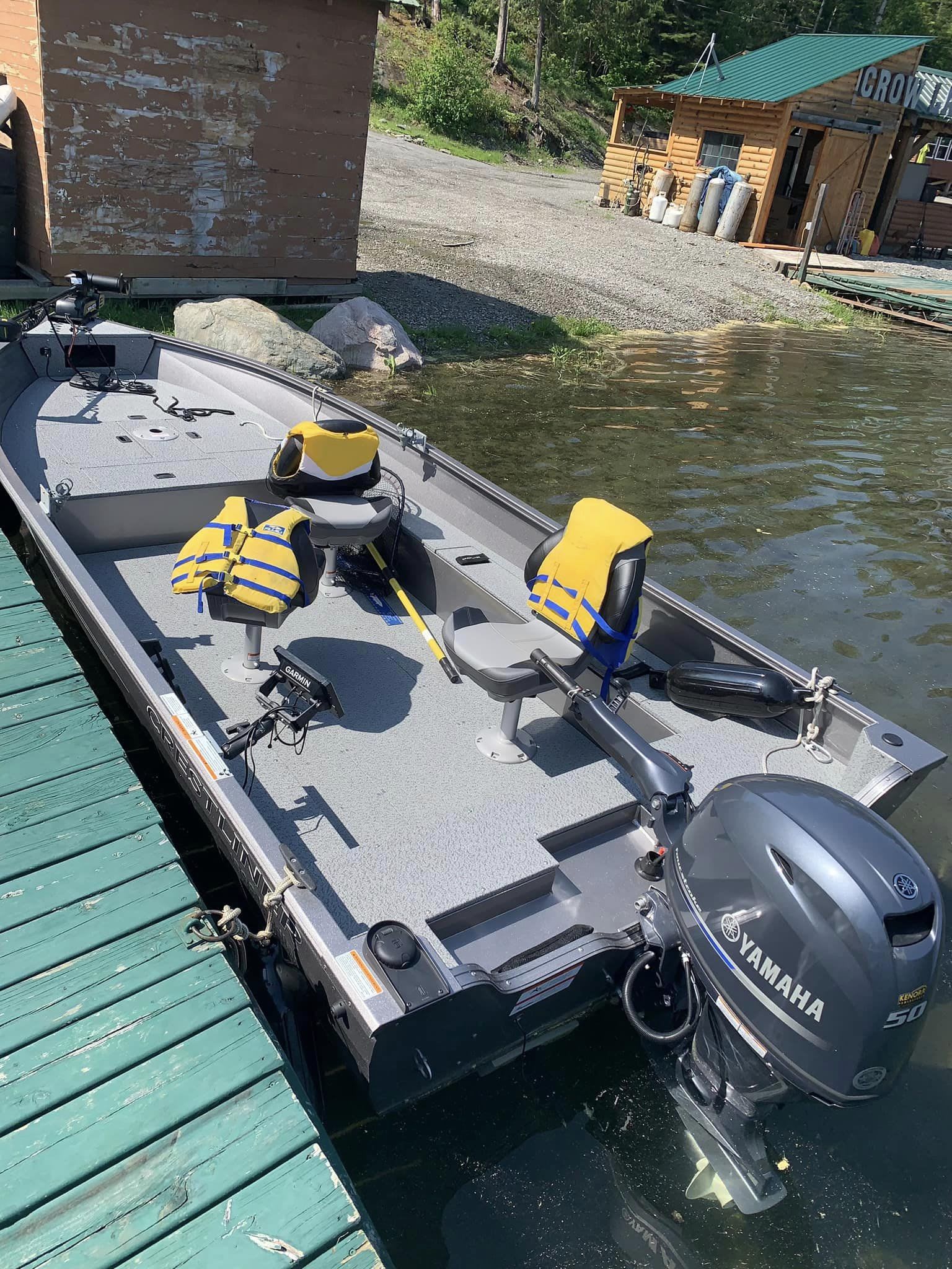 The boats are available at 5:00 pm the day of arrival. We rent 17.5 foot boats with 4 stroke 50 hp motors, bow mount trolling motor with dual 12 volt batteries with on board chargers, casting deck, storage, live wells and bait well. Our boats come with Lowrance colored GPS locators with a map chip, this feature on our boats will save you a minimum of 2 days of paying a guide. This complete map chip of Lake of the Woods shows you the contour, soft or hard bottom, sand bars, reefs and extended points. This feature will give you the confidence to navigate the boat giving, you more opportunity to fish. The boats include 5 gallons of gas a day, landing net (muskie or walleye) minnow bucket and if needed trolling rod holders. When you rent our boats this will include going to our boats, motors and gas on our portage lakes. With our portage lakes upon request and availability we offer a stern mount trolling motor and portable locator. Another large attribute to renting our boats includes our transporting boats to other lakes upon request. As an added convenience to our guests, that stay with us is free docking we have three docks on Crow Lake and a dock on Lake of the Woods in Stevens Bay and includes launching and parking when you bring your own boat.